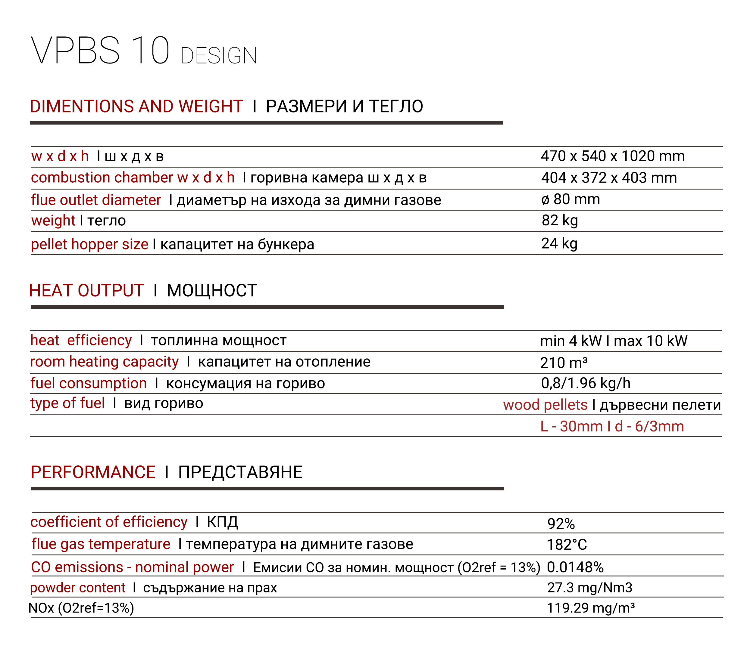 | Диаметър на комина | 80 мм |